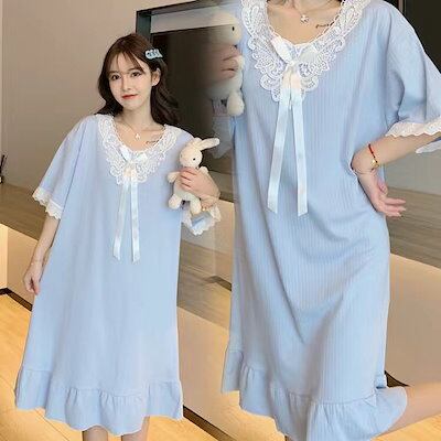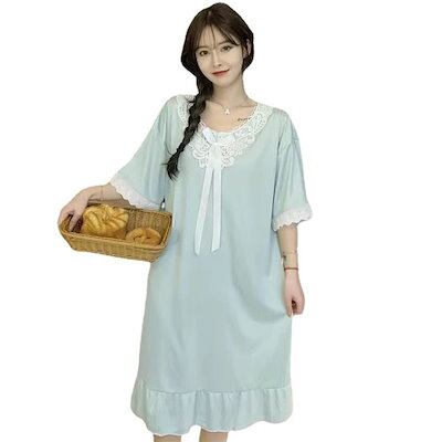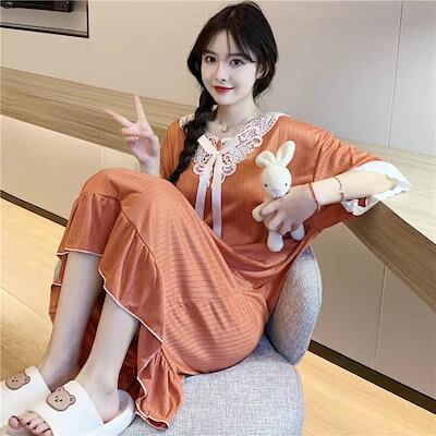 響かない!シームレスレディースパジャマ2024新作夏Tシャツ 韓国ファッションパジャマネグリジェサロペットスカートデザイン感快適透気ロングオールマッチ