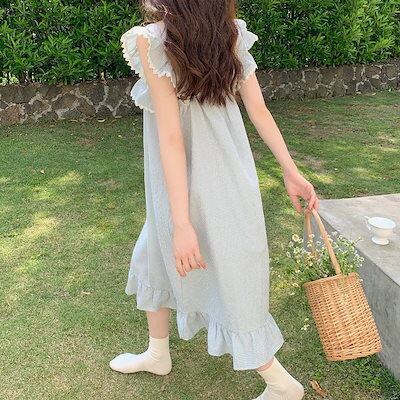 響かない!シームレスキャミワンピース ネグリジェレディース春夏セミロング快適キュートホームウェアパジャマ韓国ファッションデザイン感ワンピースサロペットスカート