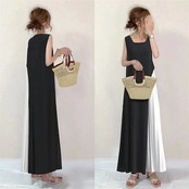 夏半袖ワンピースレディースマキシ 半袖 ロンググ 無地 おしゃれ体型カバー スカート夏の新作高級感冷淡風リネンワンピ