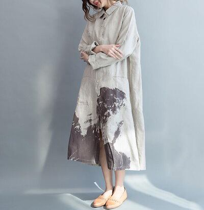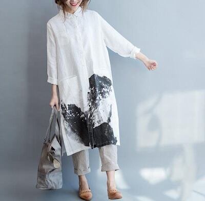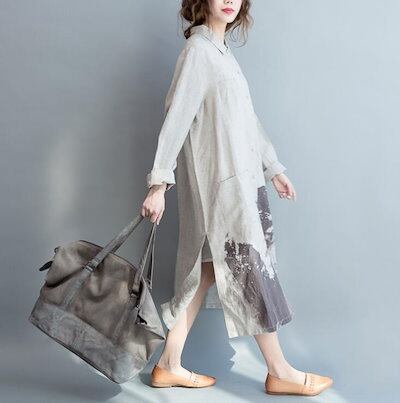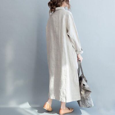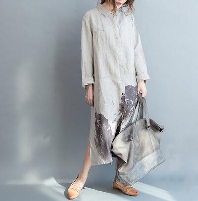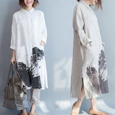 シャツワンピ ロングシャツ ワンピース 春 夏 リネン シャツ 羽織り チュニック レディース 綿 麻トップス ロングシャツ 長袖 大きいサイズ スリット