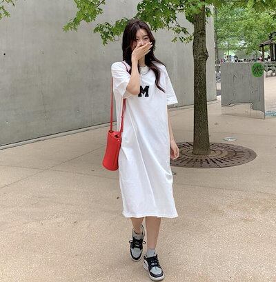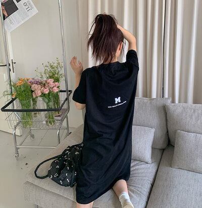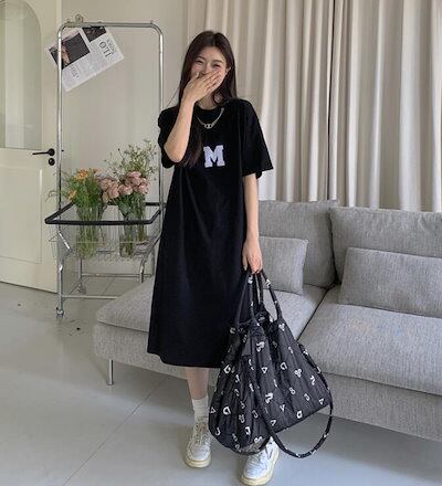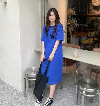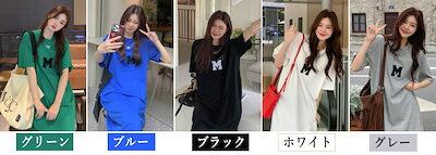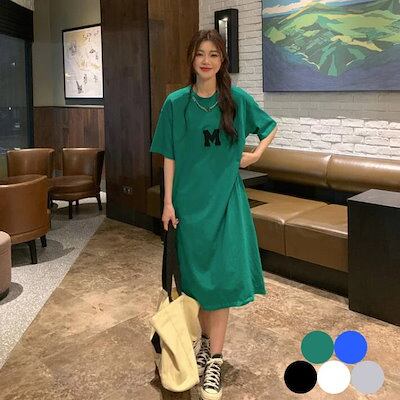 Tシャツ ワンピース レディース 夏 半袖 大きいサイズ ロゴ ワンピ Tシャツワンピ ロングT 膝丈 スウエット 部屋着 楽ちん
