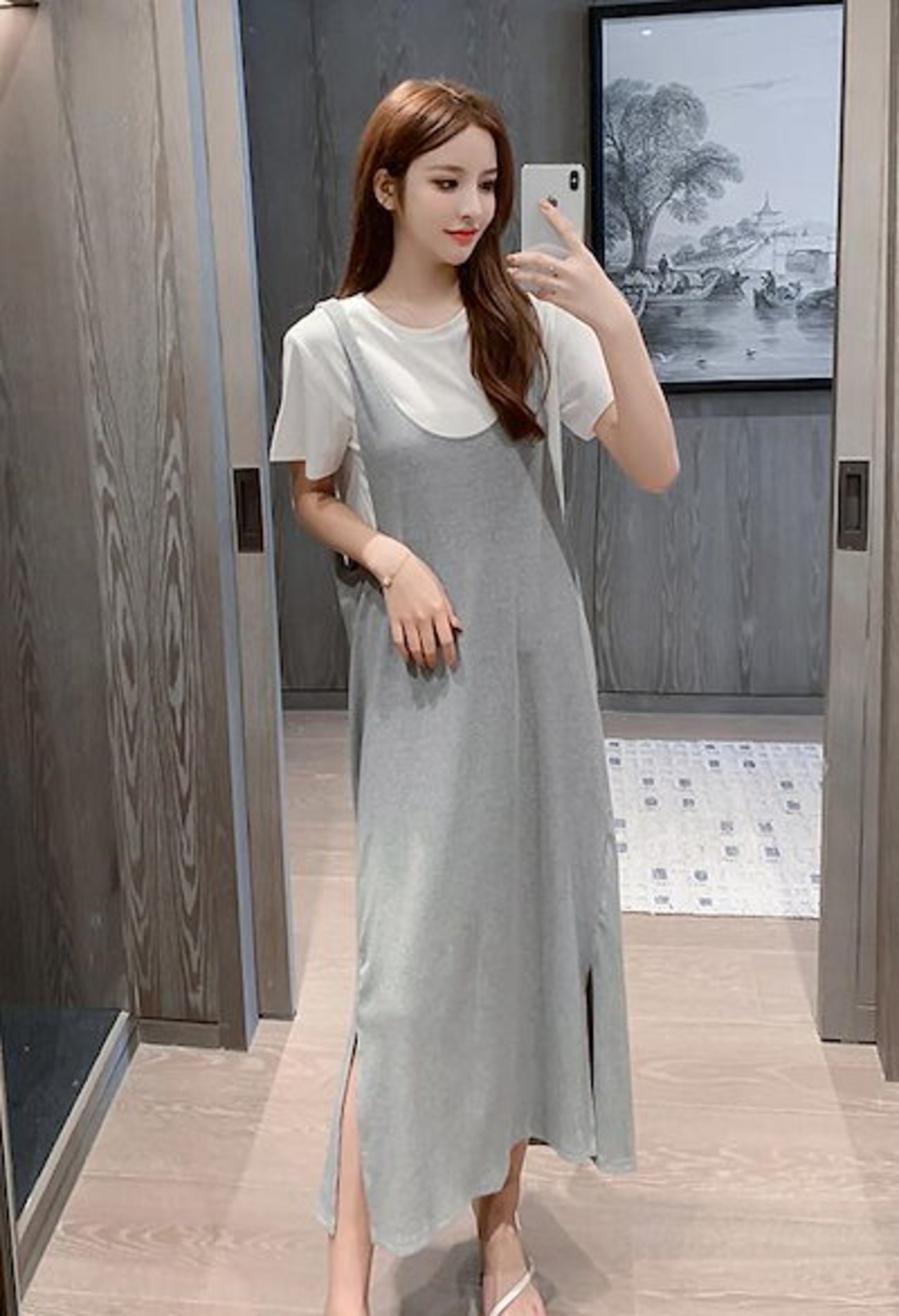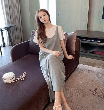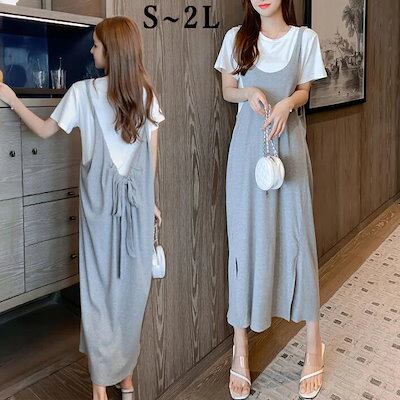 キャミワンピース ワンピース マタニティ キャミソールワンピース スリット ロング丈 ミディアム ノースリーブ 体型カバー マキシ丈 レディースワンピース 大きめ 妊婦 春 夏 秋 S M