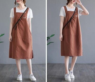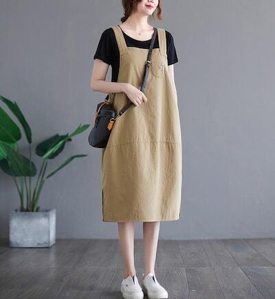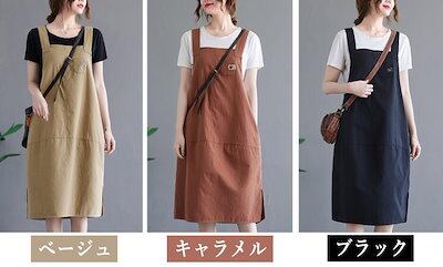サロペットスカート ジャンパースカー オールインワン 綿麻 ワンピース 重ね着 無地 ロング丈 マタニティー 体型カバー ロング レディース 大きいサイズ 大人 春 夏 M L 2L