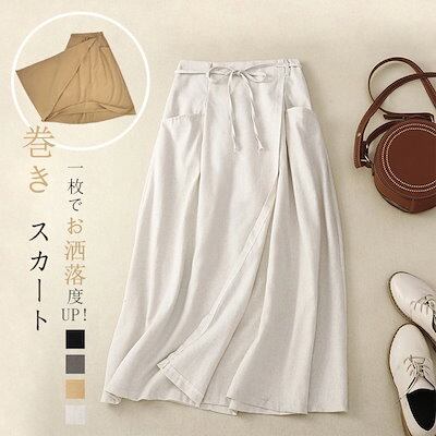 2024新品発売おしゃれ ロング スカート レディース 春夏 リネン ロングスカート 黒 カジュアル 大きいサイズ 無地 リネンスカート 夏 涼しい 快適 アウトドア ラップスカート ハイウェスト リ