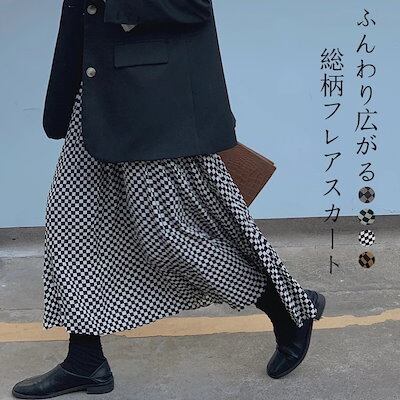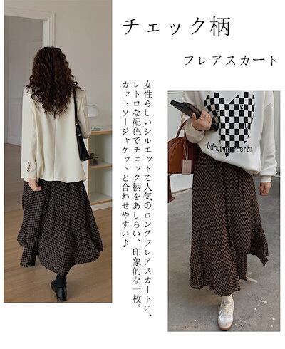 2024新品発売春物 チェック スカート ロング 大人 チェックスカート レディース 春夏 フレアスカート ミモレ丈 揺れる ボリューム Aライン ラインスカート ロング丈 ウェストゴム チェック柄