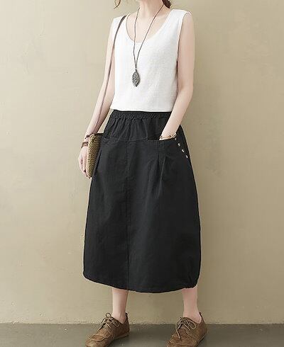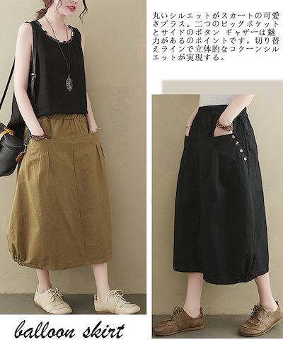2024新品発売コクーンスカート レディース 春 大人 バルーンスカート ロング スカート コクーン 丸いシルエット 可愛い ロングスカート 春夏 ハイウェスト 総ゴム ポケット ミモレ丈スカート ゆ