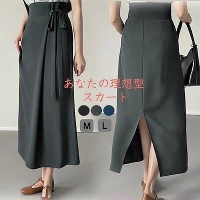 2024新品発売タイトスカート ロング 大きいサイズ ロングスカート 春夏 タイト スカート レディース きれいめ リボン ハイウェストスカート スリット ボトムス ハイウェスト ミモレ丈スカート オ