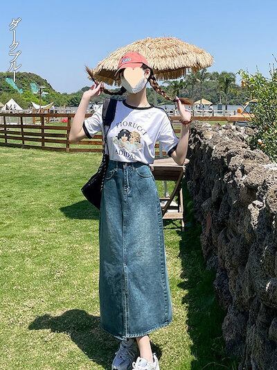 2024新品発売デニムスカート ロング 春夏 スカート 春 レディース デニム ハイウエスト ロングスカート 大きいサイズ スリット タイトスカート ロング丈 ラインスカート 体型カバー フレアスカー