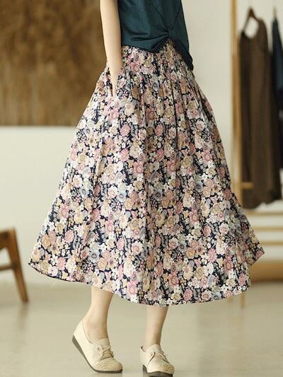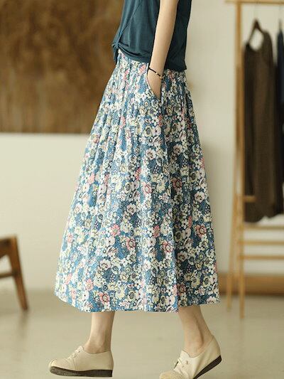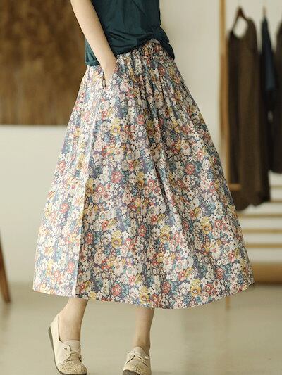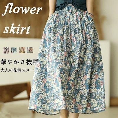 2024新品発売花柄スカート ひざ丈 夏 綿 ロングスカート 春 ウエストゴム フレアスカート 花柄 スカート 春夏 ミモレ丈 低身長 ボトムス レディース 体型カバー ロンスカ ゴム 大きいサイズ