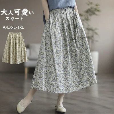 2024新品発売花柄 スカート ロング 春夏 ロングスカート 大きいサイズ レディース ふんわり れいめ ミモレ丈スカート 体型カバー 着痩せ ボトムス 花柄スカート 空気感 ギャザースカー