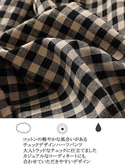 2024新品発売ハーフパンツ レディース チエック柄 夏 5分丈 パンツ ポケット 春夏 おしゃれ ハーフ 膝丈 体型カバー ウェストゴム きれいめ コットン 綿 カジュアル ショートパンツ
