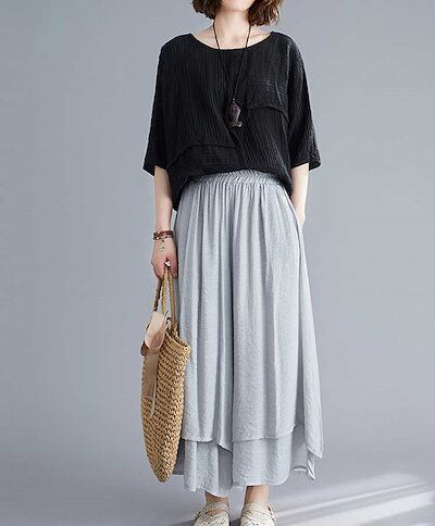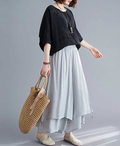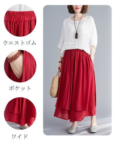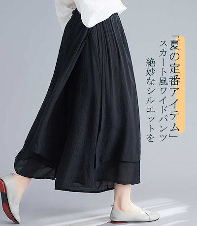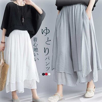 2024新品発売スカート風ワイドパンツ ガウチョパンツ 夏 レディース スカーチョ パンツ 涼しい ワイドパンツ ハイウェスト 大きいサイズ ロングパンツ 薄手 ウェストゴム 無地 ふんわり