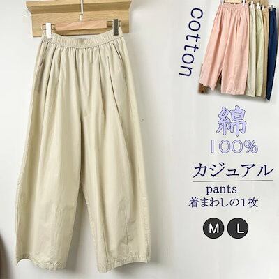 2024新品発売ガウチョパンツ レディース コットン ロング丈 バルーンパンツ 大きいサイズ アンクルパンツ 春夏 ロングパンツ 総ゴム ウェストゴム ボトムス 九分丈 薄手 通気性 コクーンパンツ