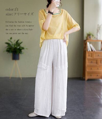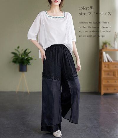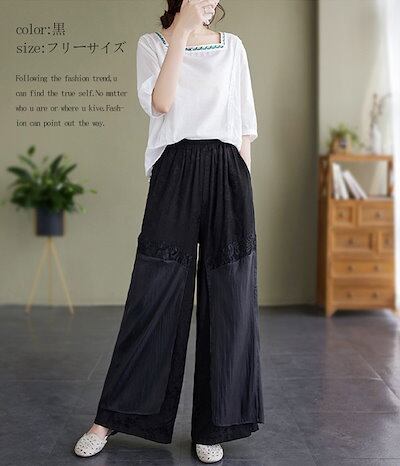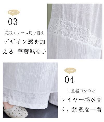 2024新品発売ペチパンツ ロング ペチコート ワイド パンツ 裾 レース きれいめ ガウチョパンツ 夏 レディース 黒 重ね着 インナーパンツ ふんわり 涼しい ワイドパンツ ハイウェスト シワ加工