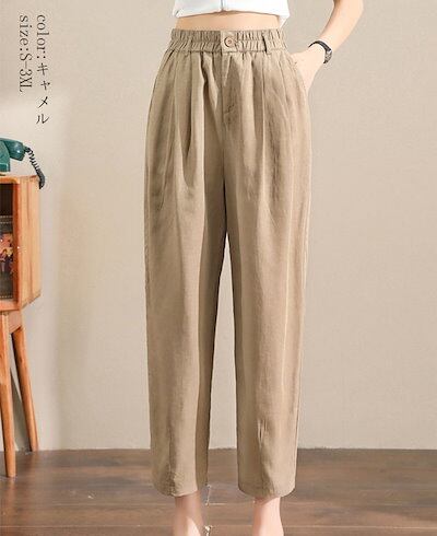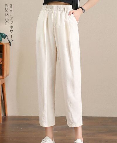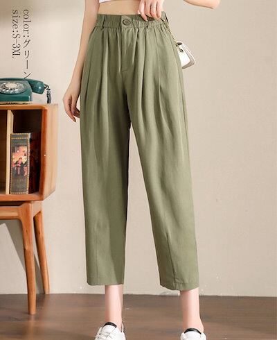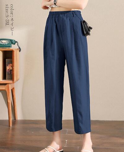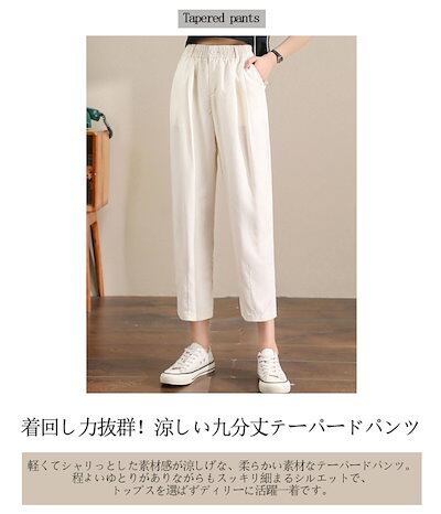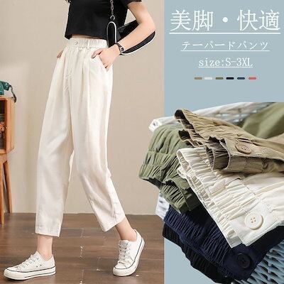 2024新品発売細見え テーパードパンツ 細身 レディース 春夏 パンツ 九分丈 カラーパンツ ウェストゴム ポケット 九分丈パンツ ボトムス 体型カバー 着痩せ 美脚 テーパード アンクル