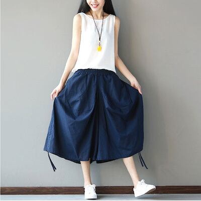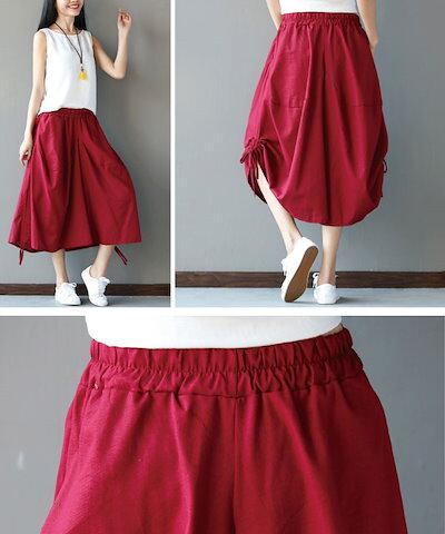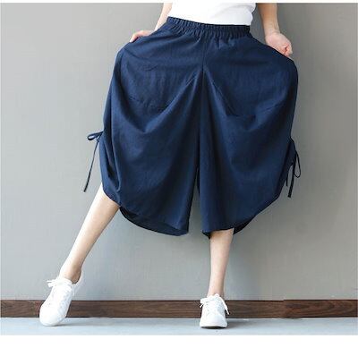 2024新品発売綿麻 美脚 ガウチョ パンツ きれいめ 7分丈 ワイドパンツ ガウチョパンツ 春 スカンツ スカーチョ レディス ハーフパンツ ビッグシルエット 裾デザイン 春 夏 秋 パン
