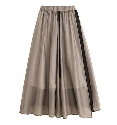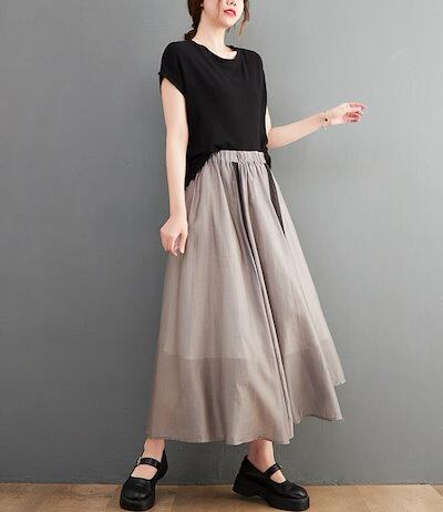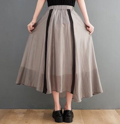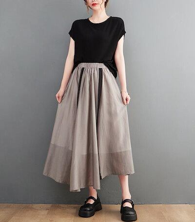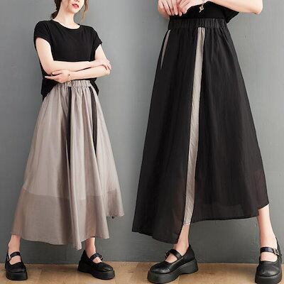 アシンメトリースカート プリーツ フレアスカート スカート スリット ミモレ丈 ひざ丈 ロング Aライン ウエストゴム おしゃれ ボトムス レディース 大きいサイズ 春 夏 秋