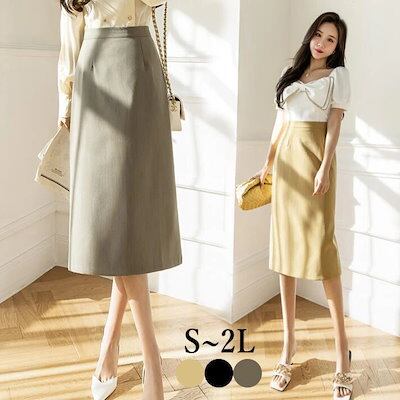スカート レディース ハイウエスト ロングスカート Aラインミモレ丈 ひざ丈 ミディアム ロング丈 美脚 OL 二次会 デート オフィス フォマール カジュアル ボトムス シンプル 春 夏 秋 S