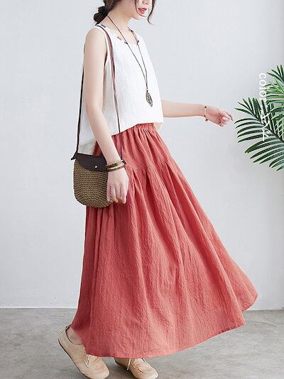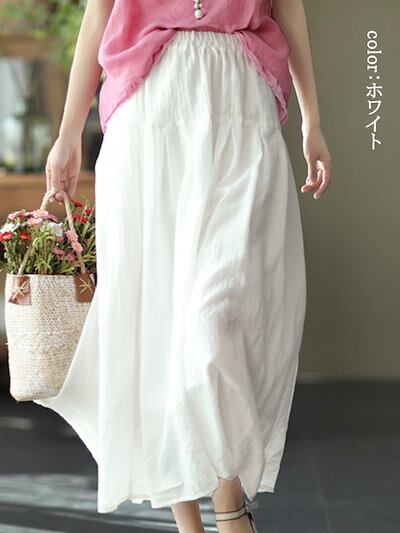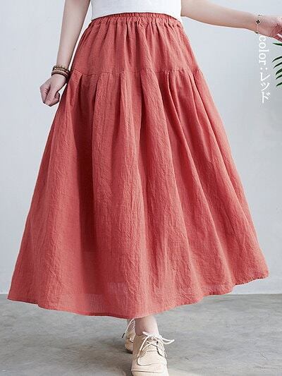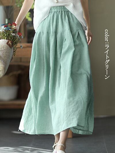 2024新品発売綿麻 スカート レディース 春夏 ロングスカート ウェストゴム フレアスカート Aライン マキシスカート 大きいサイズ 体型カバー オシャレ ボトムス 着痩せ 高見え コーデ 通気性良