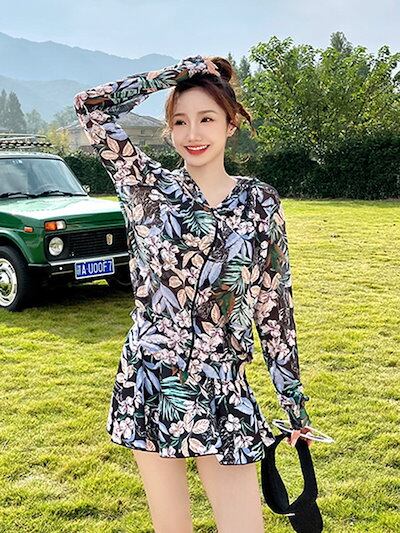 フラワー 長袖 日焼け防止 3点セット セパレート水着 温泉 水着 体型カバー 水着 レディース ラッシュガード ビキニ 水着 韓国