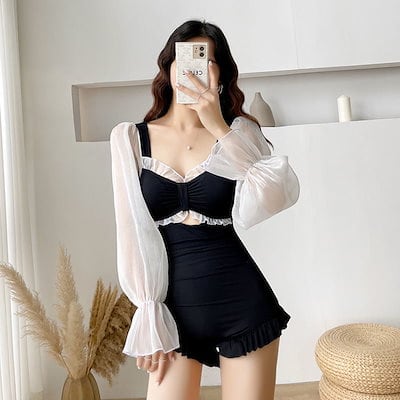 【新作追加】水着 レディース ワンピース水着 水着 体型カバー 2025新しい水着女性セクシーな長袖学生温泉水着
