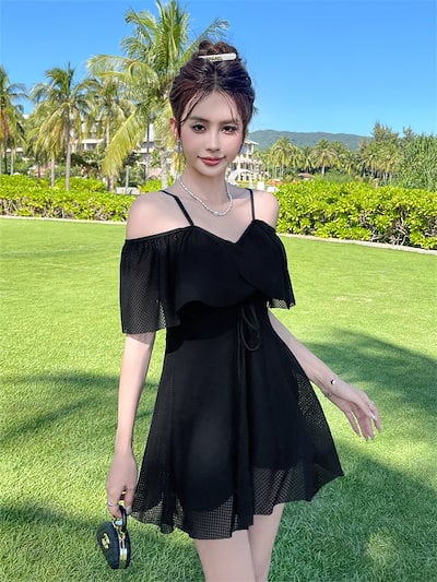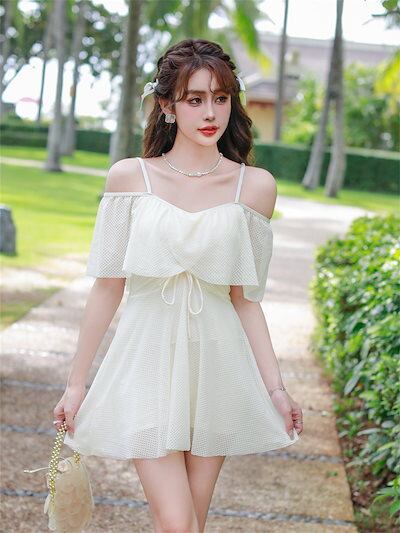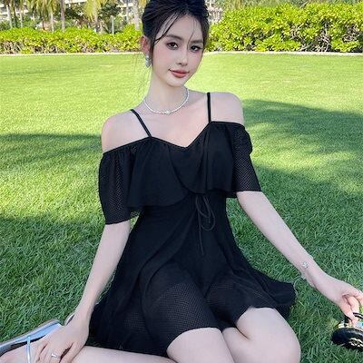 2025夏 水着 レディース セクシーなデコルテが連なる痩せ見え腹部カバー水着無地 可愛い 温泉 修学旅行 ラッシュガード 水着 体型カバー ワンピース ビキニ