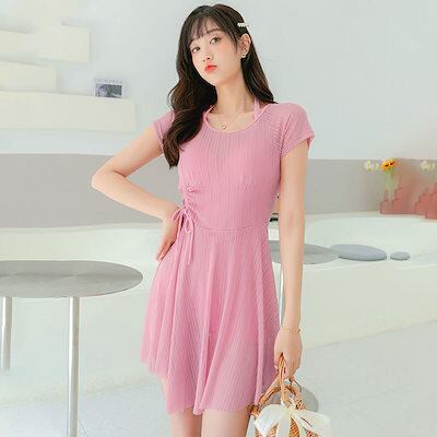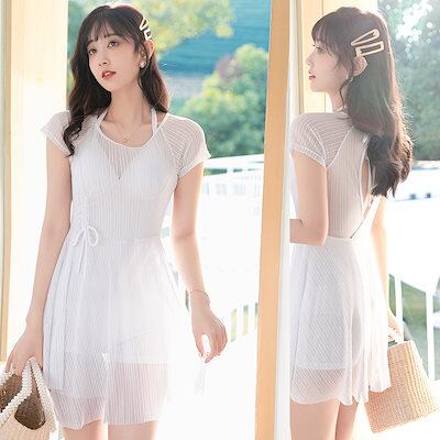 2025夏 水着 レディース スカート式ハイウエスト温泉入りビーチスイミングウェア 韓国 可愛い 温泉 修学旅行 ラッシュガード 水着 体型カバー ワンピース ビキニ