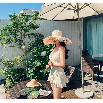 2025 人気 水着 レディース 水着 体型カバー ママ ワンピース フレアスカート 可愛い 無地 レディース