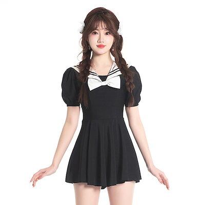 2025 新しいスタイル ネイビーカラー 蝶ネクタイ スウィート スチューデント 保守的 ワンピース シン 水着 韓国ファッション