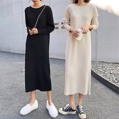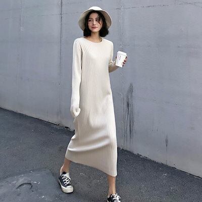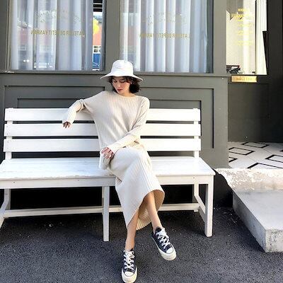 2024 ニューデザイン 韓国 おしゃれ ゆったり スリム見え ニットワンピース タイルアップ 水着 ビーチツアー ワンピース ベーシックニット