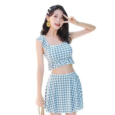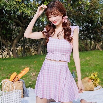 【2025新作】二点セット セパレート水着 チェック 可愛い 着痩せスリム見え レディース 水着 夏 韓国ファッション ゆったり 高校生 中学生 大きいサイズ 紫外線対策