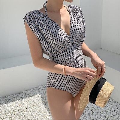 日韓 ウ オールイン水着 スリム見え フチヴィンテージ バッス 水着 レディース ラッド