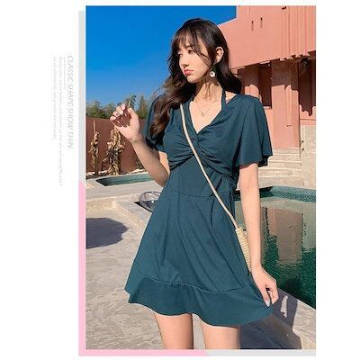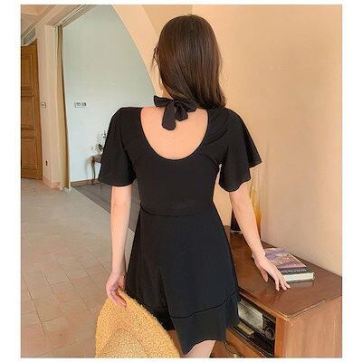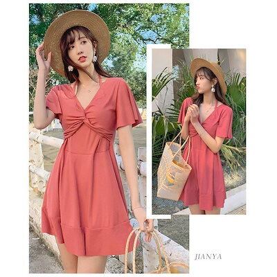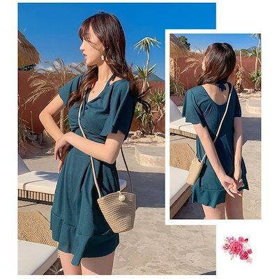 水着レディース水着ワンピース型サロペット背中出しスリム保守スイムウェアスイミング女性用温泉ビーチリゾートプール海大きいサイズ