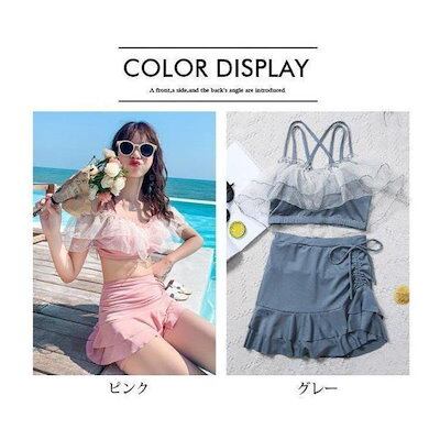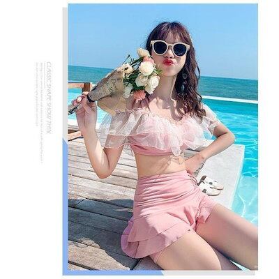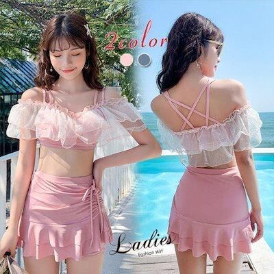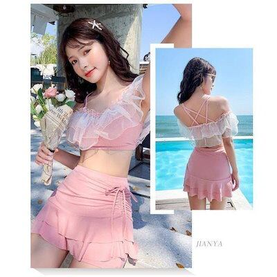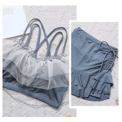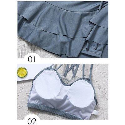水着レディースビキニセパレート水着スカート式小胸バンドゥ背中出し水着可愛いスリムスイムウェア温泉ビーチリゾートプール海