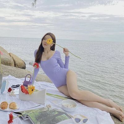 激安水着韓国版新作連体水着美背中セクシー長袖スリムスリムベルト水着温泉海辺リゾート女性用日焼け止め水着 水着
