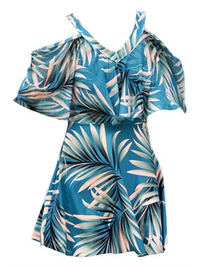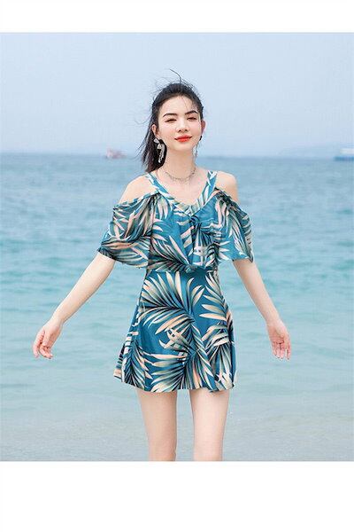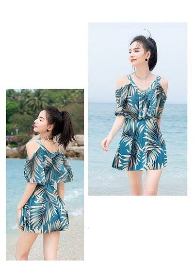 ワンピース水着 セクシー レディース 水着 半袖 体型カバー 2点セット 可愛い 痩せ見え リゾート 温泉 ビーチ プール 海 水泳 セパレート オトナ女子 かわいい おしゃれ 韓国風 ブルー