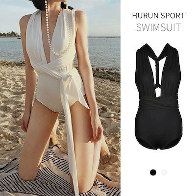 水着 体型カバー 競泳 韓国ファッション Swimwear セクシーなワンピース白い気質ストラップリゾート水着女性ディープ V ネックバックレス水着
