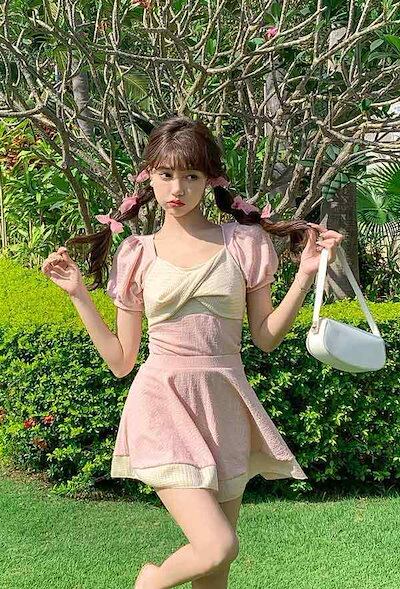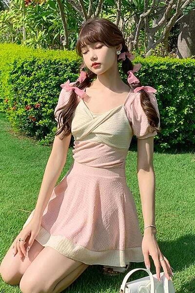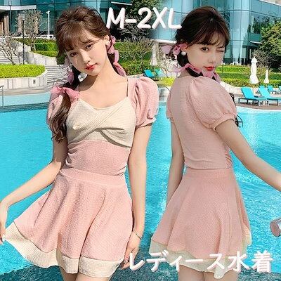 ワンピース水着 水着 レディース 2点セット 半袖 ワイヤーなし パッド付 パフスリーブ シンプル セクシー 写真映え 撮影用 海 夏 サマー プール リゾート かわいい 旅行 温泉 大人 女性用 ジ