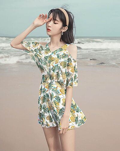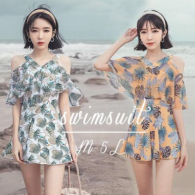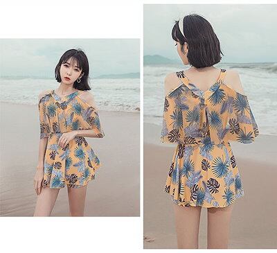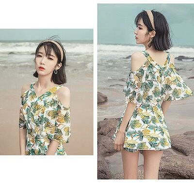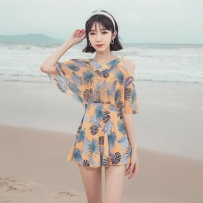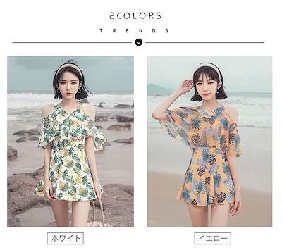 ワンピース水着 体型カバー レディース フリル ワンピース お尻カバー 二の腕カバー 露出控えめ ガーリー 白 黄色 イエロー ホワイト ぽっちゃり 大きいサイズ ガール 可愛い 痩せ見え リゾート
