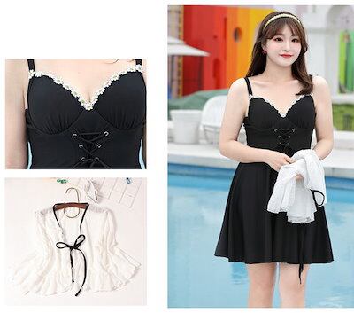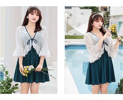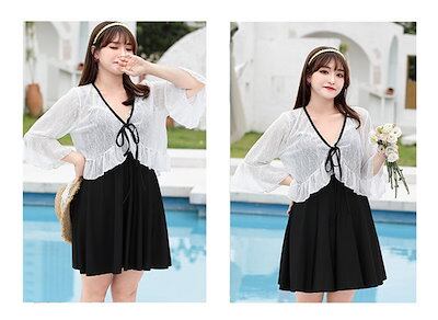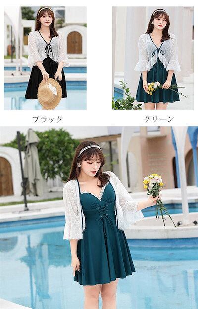 日焼け対策やちょっとした防寒対策にも ぽっちゃり 水着 女性 ワンピース水着 水着 2点セット シンプル セクシー 写真映え 撮影用 海 夏 サマー プール リゾート かわいい 旅行 温泉 大人 de