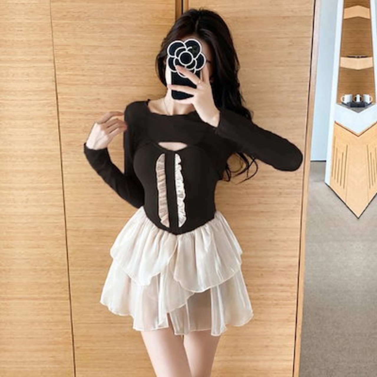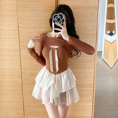 ビキニ ワンピース 体型カバー 水着 ラッシュガード 修学旅行 温泉 可愛い 韓国 連胴水着女学院風腹部隠しで痩せ見え保守リゾート温泉 レディース 水着 2025夏