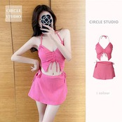 ビキニ ワンピース 体型カバー 水着 ラッシュガード 修学旅行 温泉 可愛い 韓国 3点セット腹部隠しで痩せ見えリゾート背中見せ セクシービキニ レディース 水着 2025夏