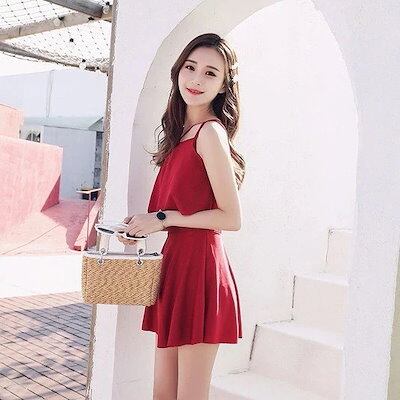 レディース水着ワンピース体型カバーフレア温泉海プールスイミングビーチリゾートマリン海水浴春夏休み旅行可愛いセクシー女性ブラックピンクレッド黒桃赤MLXLサイズ