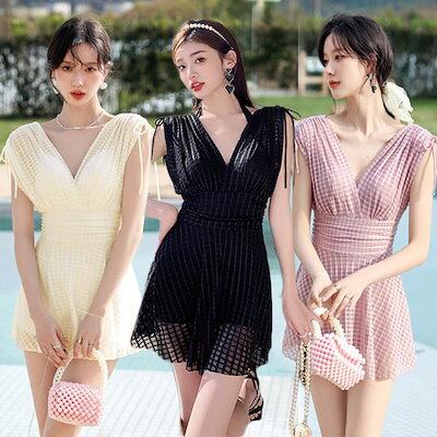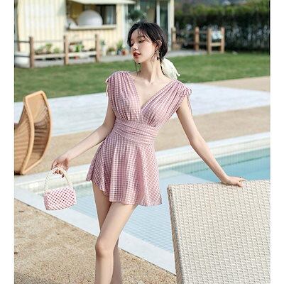 水着レディース全3色チェック柄ワンピース水着シースルー透け感ワイヤーありパッド付きビーチ海リゾートビーチウェア海外旅行
