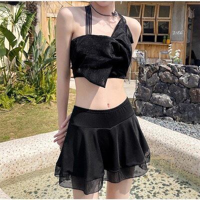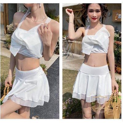水着 レディース ワンピース 2点セット バンドゥ パレオ リゾート 体型カバー UVカット ママ水着 海水浴 潜水 韓国風 可愛い