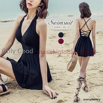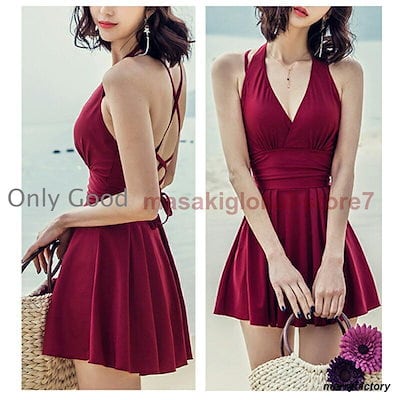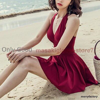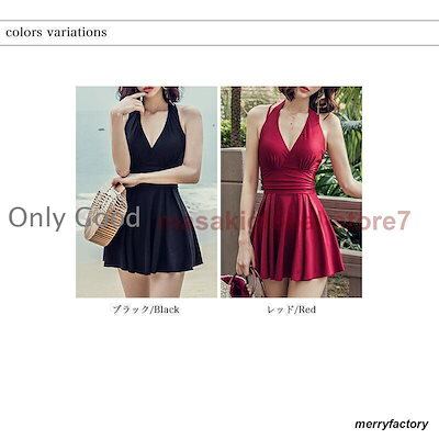 水着 紫外線防止対策 水着セット 水着インナー ワンピース水着 カシュクール ななめ巻き バッククロス レッド 黒 ショーツ一体型 タンキニ リゾート夏 ビーチ