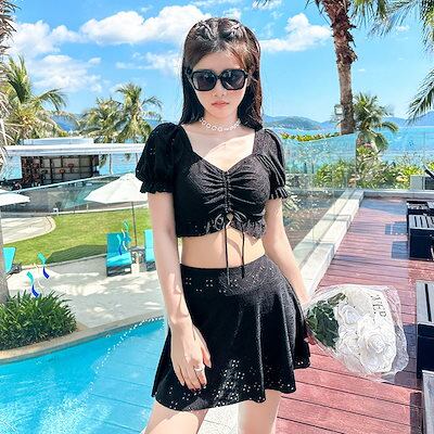 24 水着 レディース ワンピース体型カバー 2点セット ビーチ 無地 サーフパンツ リゾート水着 海パ