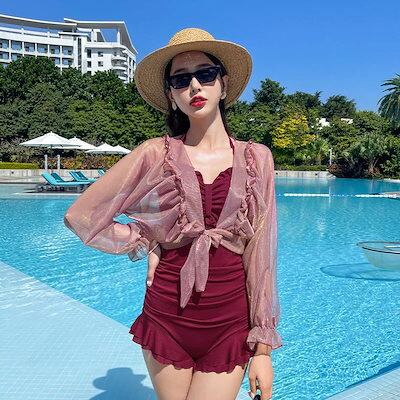 24 体型カバー 水着 レディース ワンピース セパレート 大きいサイズ 中学生 高校生 体型カバー 2点セット 上下セット 学生 少女 リゾート