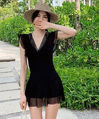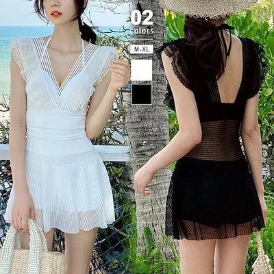 水着レディースワンピースオールインワンフリルレースシアーフレアワンピース水着大きいサイズ体型カバーホルターネックセクシーショートパンツスカートリゾート上品可愛い韓国風韓国ファッション16