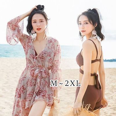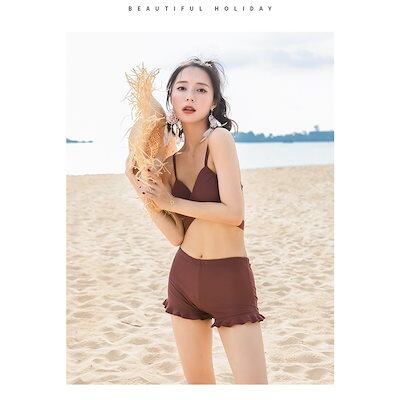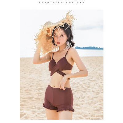 水着 レディース 体型カバー ビキニ 3点セット 花柄 ショットパンツ バストンドゥ 小胸バンドゥ 水着セット 体型カバー ママ水着 スイムウェア 20代 30代 40代
